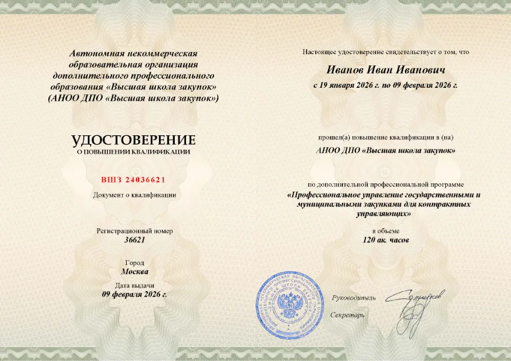 Контрактная служба организации — заказчика по 44-ФЗ — повышение квалификации с удостоверением 120 часов