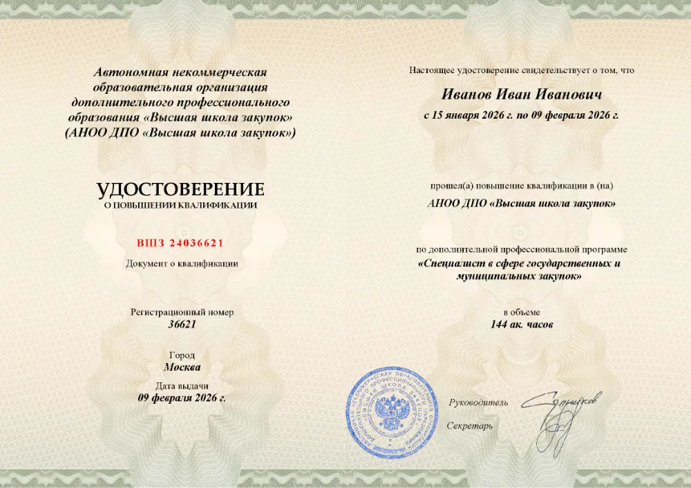 Управление государственными и муниципальными закупками (44-ФЗ) для заказчиков — повышение квалификации с удостоверением 144 часа